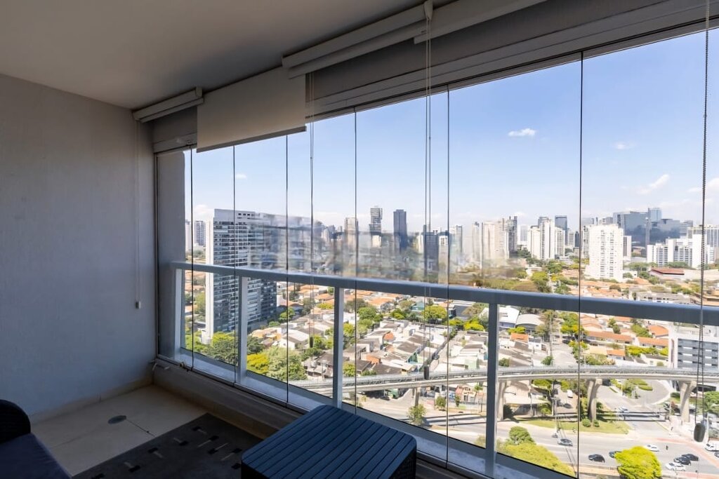 Ótima localização, em região de comércio variado, próximo à avenida jornalista Roberto marinho, avenida vereador José Diniz, e avenida Morumbi. A poucos minutos da estação Campo Belo do metrô, e do Morumbi Shopping. Próximo também aos hospitais Premier e Santa Paula. 1 vaga de garagem e 44m ² distribuídos em 1 dormitório com móveis planejados, sala com varanda envidraçada integrada, banheiro, cozinha com armários e área de serviço com aquecedor. Condomínio oferece aquecimento central, churrasqueira, espaço gourmet, espaço zen, garagem para visitas, gerador, hidromassagem, home cinema, jardim, lavanderia coletiva, piscina no rooftop, piscina aquecida, sala de ginástica, salão de festas, salão de jogos, sauna e vestiário.