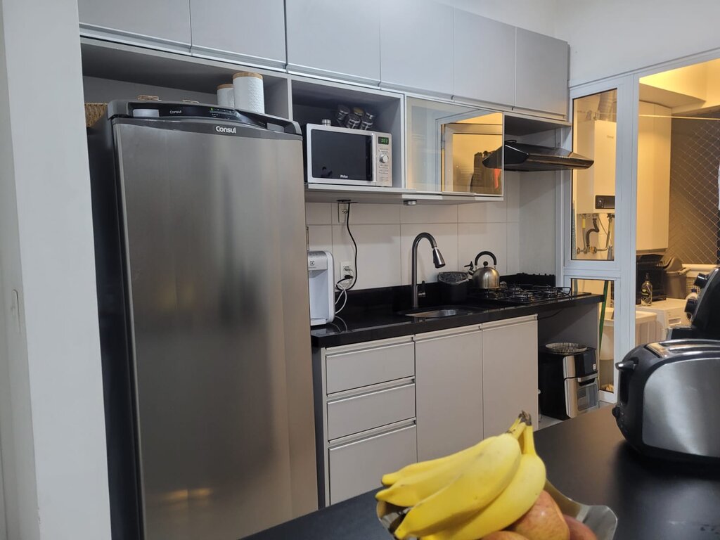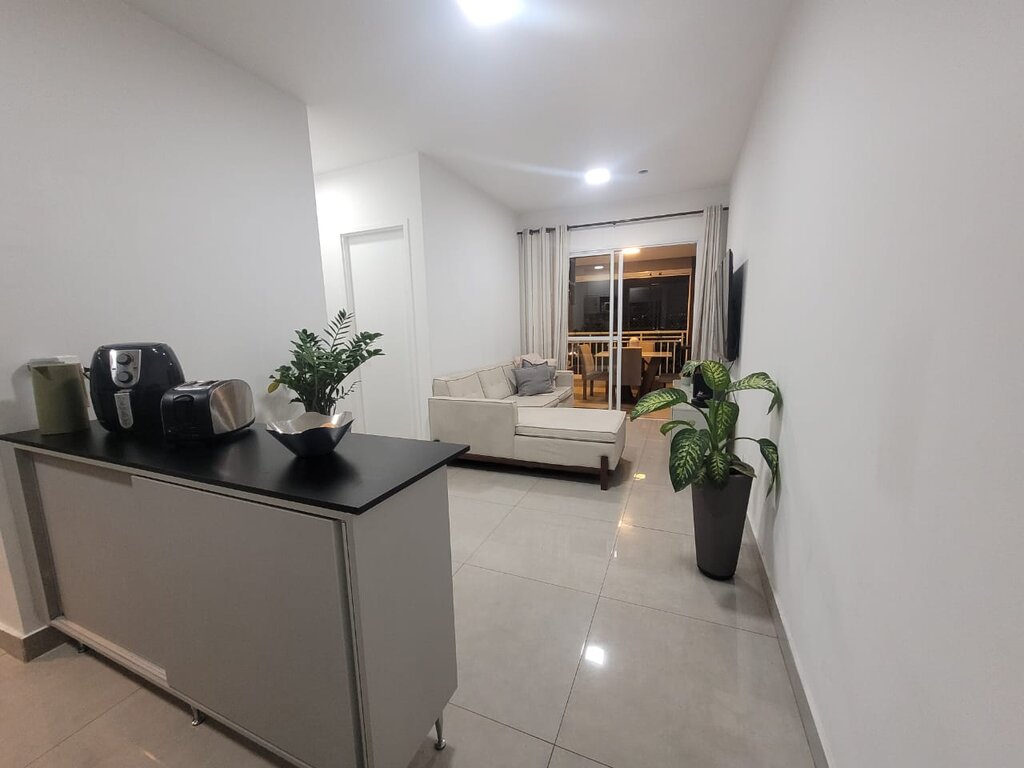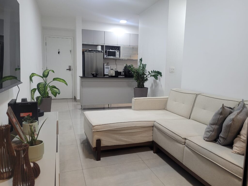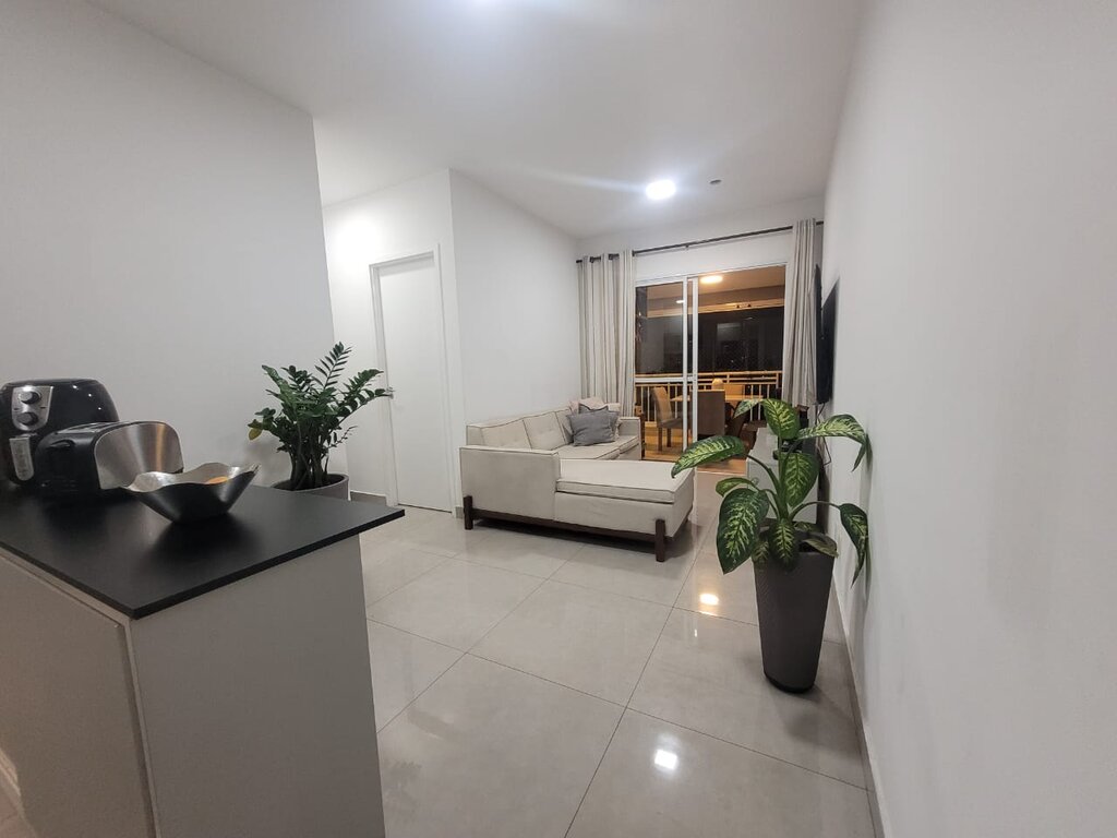 A sala, com dois ambientes (estar e jantar), é ideal para receber amigos e familiares. O apartamento conta ainda com cozinha funcional, área de serviço e um banheiro social. Um dos grandes destaques é a sacada espaçosa, um convite para relaxar e aproveitar a vista. O apartamento inclui também uma vaga de garagem coberta.