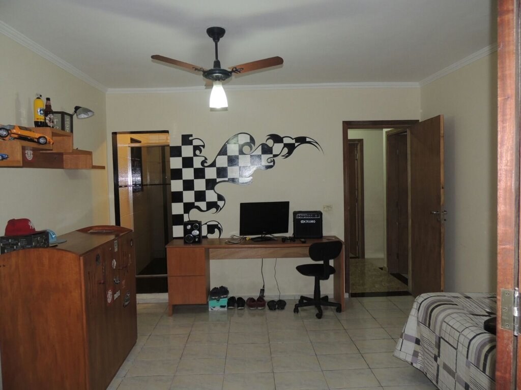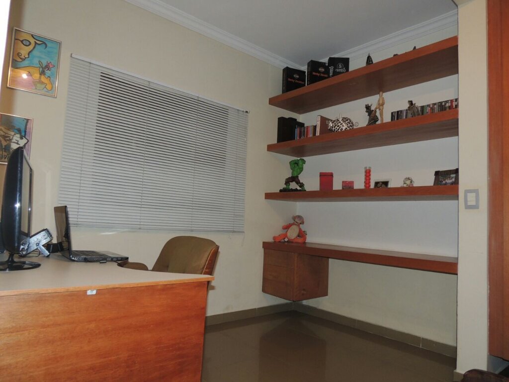 O sobrado é amplo e muito bem distribuído. São três suítes confortáveis, garantindo privacidade para toda a família, quatro banheiros no total e três salas que permitem criar ambientes distintos, como sala de estar, sala de jantar e sala de TV ou escritório. A cozinha possui ótimo espaço e integração funcional com os ambientes.